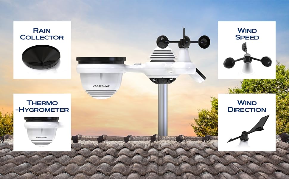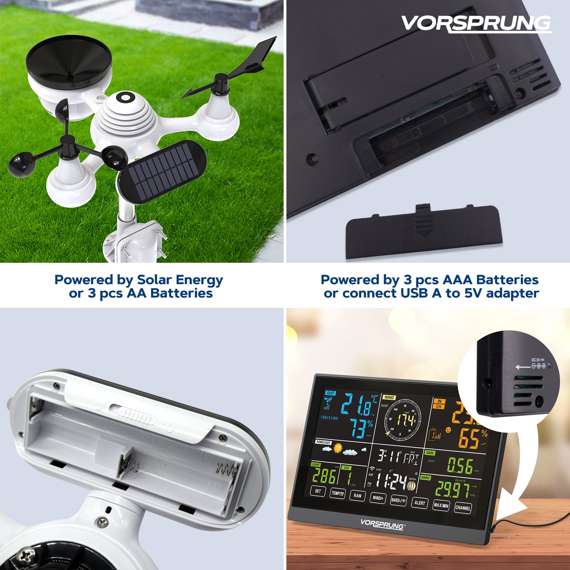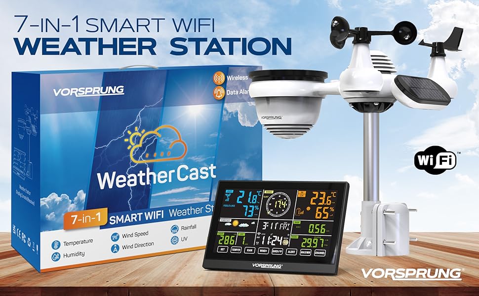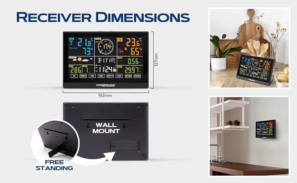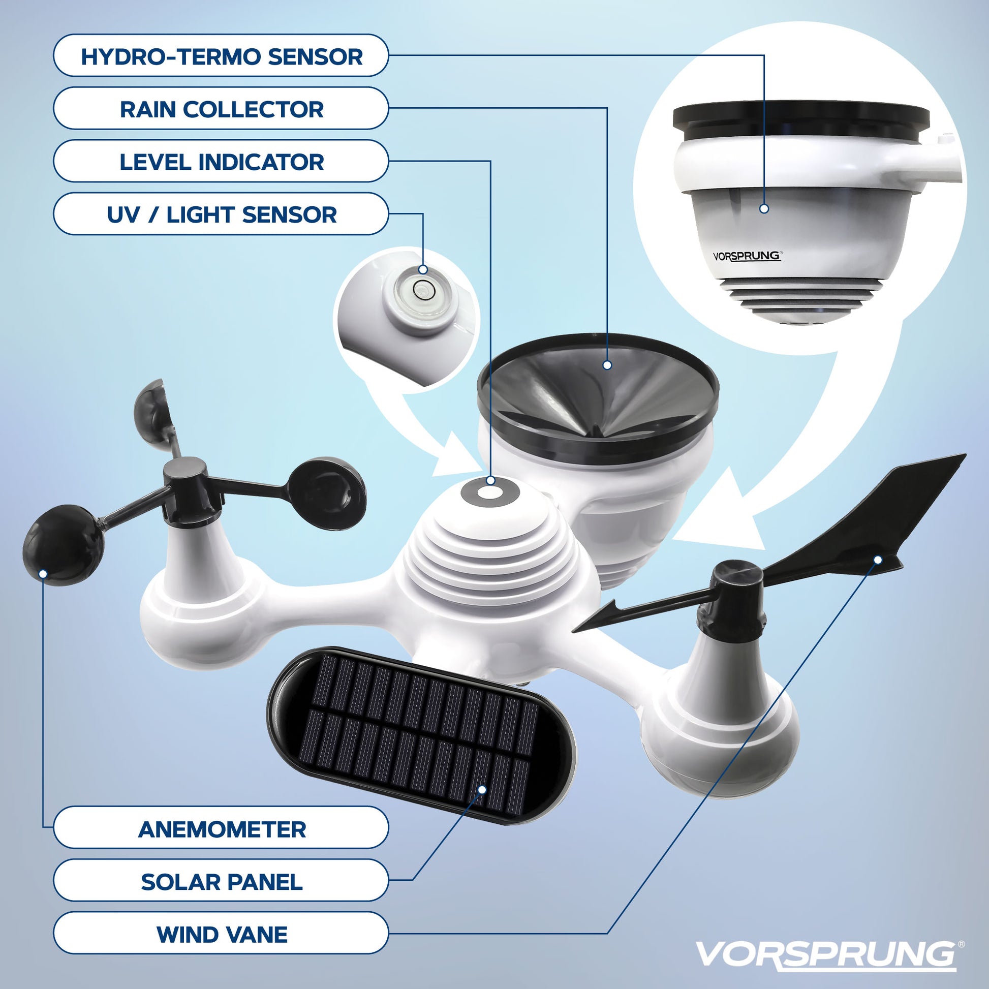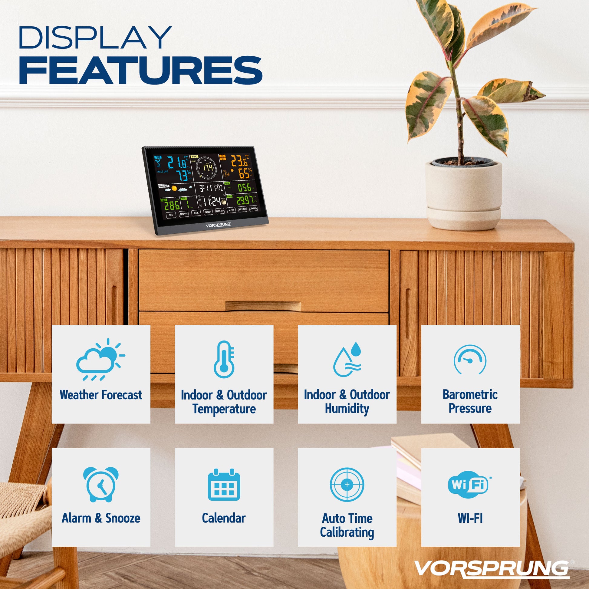 - PLUS GRAND ÉCRAN COULEUR LCD – La station météo Vorsprung dispose d'un écran LCD de 6,7 x 4,9 pouces avec des cristaux liquides raffinés intégrés pour une excellente qualité visuelle. L'écran permet d'afficher des informations vitales qui vous permettront d'analyser les données produites par les capteurs